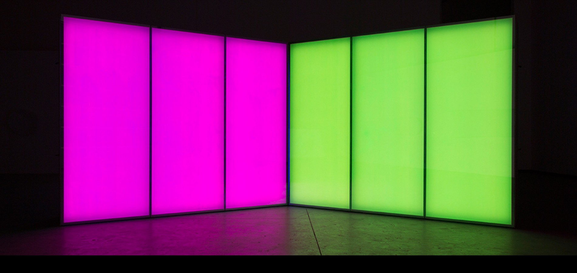 Bent Parallel, 2014, 258” x 96” x 106”, Glass, Aluminum, LED Lighting, Custom Electronics