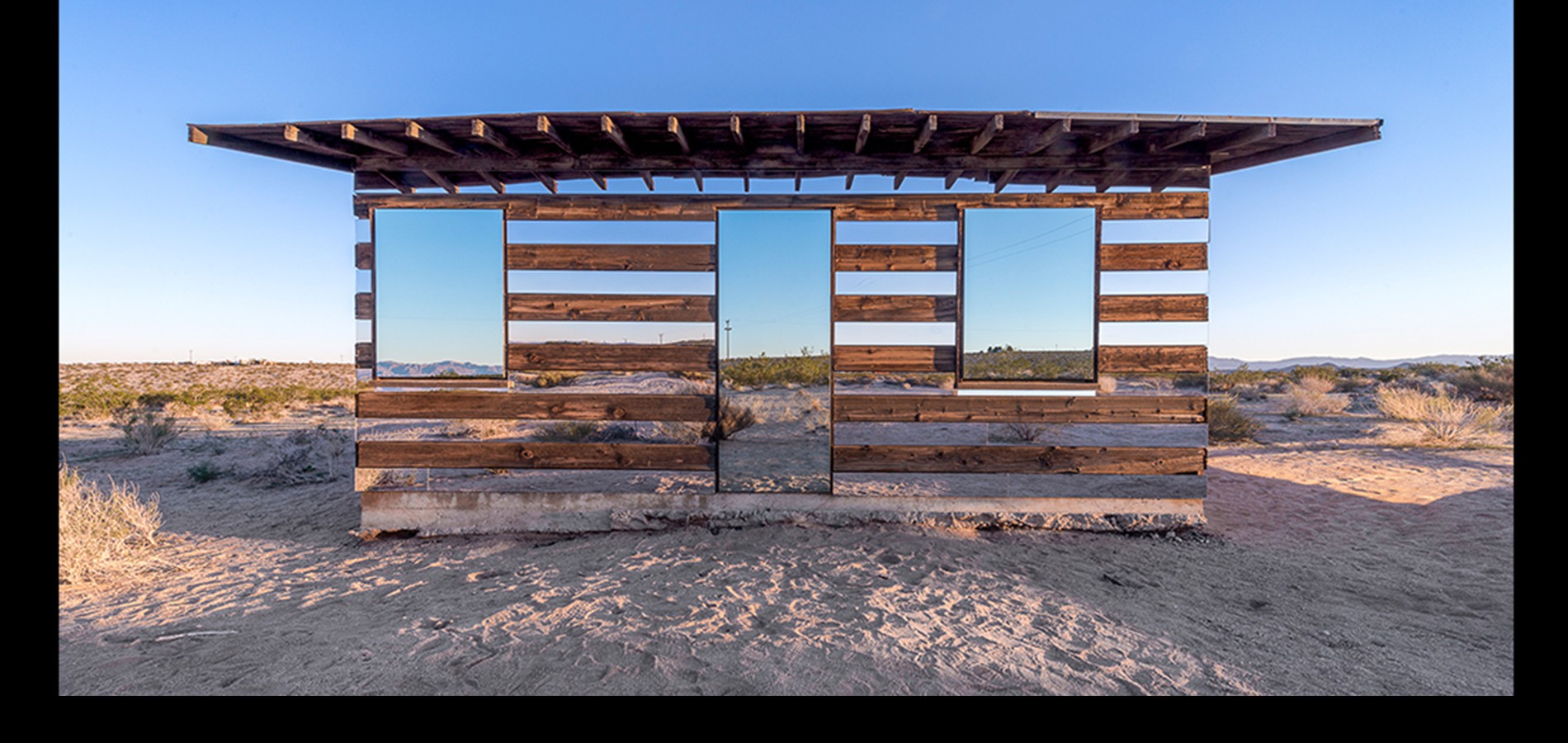Lucid Stead, 2013, Joshua Tree, CA, 25’ x 16’x 10’, Existing homestead cabin, Mirror, LED Lighting, Custom Electronic Components